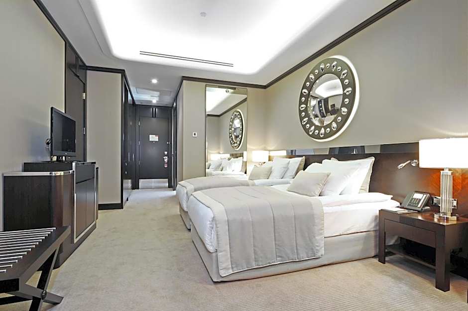 Our Standard rooms are 37 square yards spacious which is biggest size in the city, elegant, modern, functional, innovative and tidy, blending with the perfection of Bursa's unique city and Uludağ view with its regular design. Our guests are provided with a comfortable desk, strong 300 mbps internet and Smart 4K Led TV that allows them to work while resting, and quality service is provided to meet you needs. Fully free access to Spa you only pay special service, massages, foam bath, scrubbing etc.